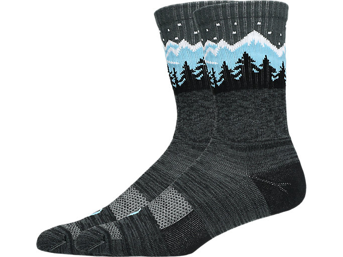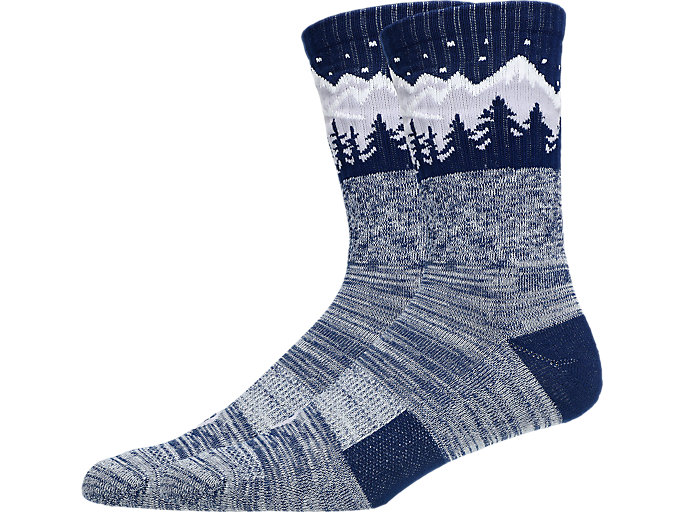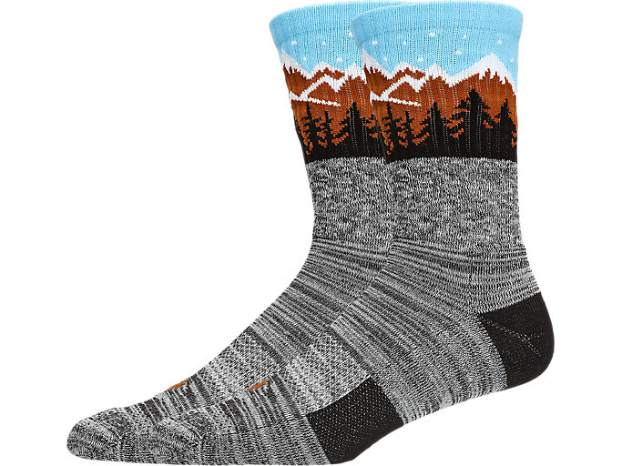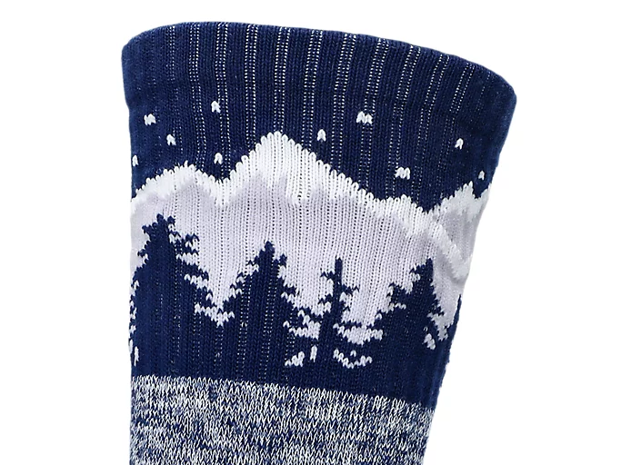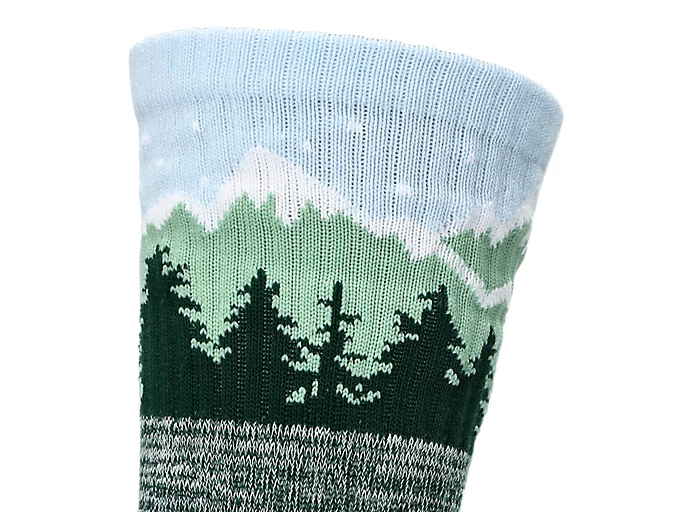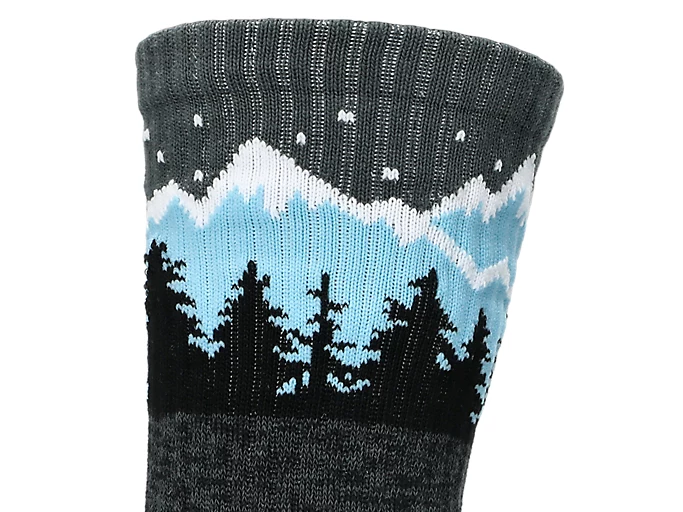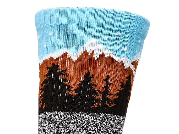 The sock also features a graphic of a winter mountain throughout the design.
