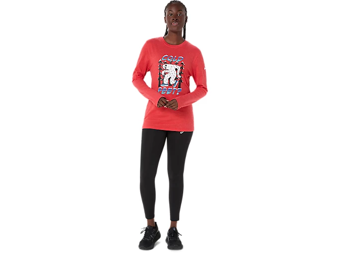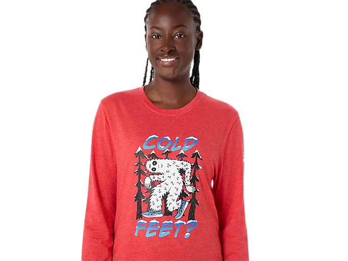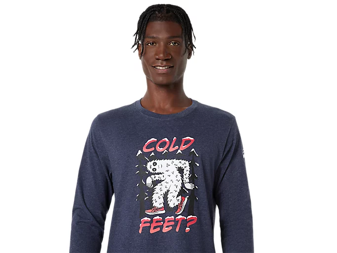 This long sleeve t-shirt is inspired by the winter season. It features a yeti front graphic that’s accompanied by the phrase, "COLD FEET?" on the front. Lastly, the fabric is made with a cotton blend knit for comfort.